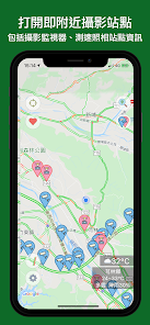 打開即用打開定位即實際地圖上繪製附近即時影像(CCTV)以及測速照相站點資訊。一律呈現最近的五十個站點變動地圖位置時再依位置動態更新呈現。