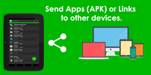 - Send apps to other devices via Bluetooth, Wi-Fi etc.