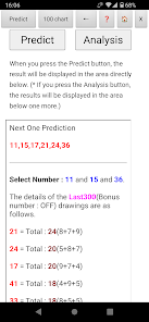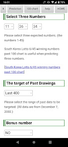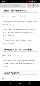 該軟件不是一個完美的預測軟件,因為您必須使用“韓國樂透 6/45 中獎號碼超過 100 圖表”自己預測三個數字。