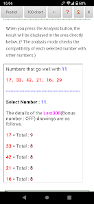 當您單擊分析按鈕時,您可以檢查每個選擇的號碼與其他號碼的兼容性,這些號碼的設置與進行預測時相同。