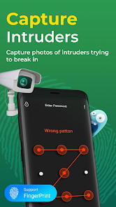 * 自動拍攝入侵者的照片,這些入侵者試圖在 3 次內用錯誤的密碼解鎖您的應用