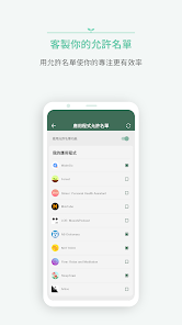 • 自訂應用程式白名單種樹時名單外的 App 將會被封鎖