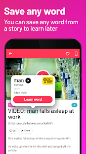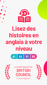 “出色的應用程序。我喜歡各種各樣具有不同主題的故事。英語故事的持續時間和級別不同。您可以在閱讀時保存單詞,然後以後再學習,效果很好。一切都很棒!” —埃斯塔班