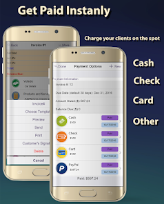 The app accepts Cash, Check, Credit Card, and PayPall payment options. You can collect payments from your clients on the spot.