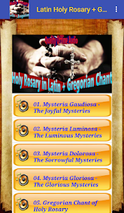 Install and enjoy the Holy Rosary reciting in "original" language of Vatican (which is the core of Roman Catholic). The Latin reciting and Gregorian Chant offer the Holy Rosary prayer experience at another level.
