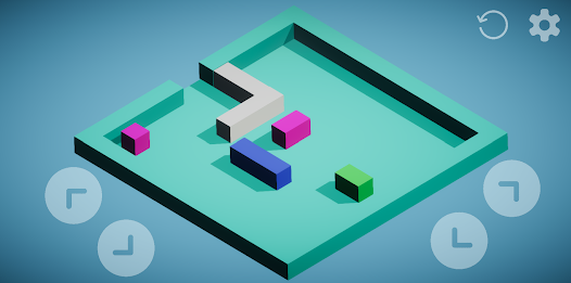 在設置中有一個退出遊戲並退出到主菜單。還有一個重新啟動關卡的按鈕,如果您遇到死胡同或觸摸競技場的牆壁,它將非常有用。請注意,使用按鈕的主立方體只能沿一個軸移動。其餘的塊可以將其移動到不同的方向。這將幫助您通過關卡。完成關卡後遊戲會自動保存。再次啟動應用程序時,請仔細選擇是要繼續還是開始新遊戲。