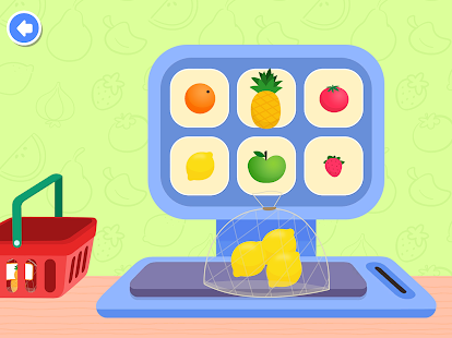 - 蔬菜水果商:您會發現各種各樣的水果,如提神西瓜和橙子。就像在真正的超市一樣,找到並取走您需要的食物,稱重袋子並貼上貼紙,然後再將其放入購物車。