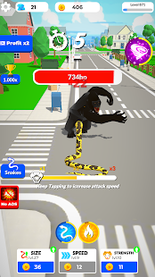 當你粉碎和吃掉物體時,你會得到免費的硬幣。交換它們以提升寵物的技能!增大它的大小,使您的蠕蟲像蟒蛇一樣大。增加可以在戰場上找到的所有東西的捕獲半徑。獲得速度提升以更快地移動。像流行冠軍一樣衝刺而不是滑行。將野獸的力量加倍,使其擁有強大的牙齒,可以吞噬人、汽車和建築物。提高致命動物的機動性以避免碰撞。進化你的怪物,賦予它強大的力量!
