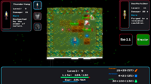 為自己裝備數百把劍、盔甲、頭盔、食物和藥水,以增強你的攻擊、防禦和生命。在迷宮地牢的每一層前進時升級你的裝備,提高你的生存機會。 ⚔️🛡️🍖