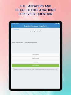 • Mock test: Various full tests let you familiarize yourself with test format. When you finish the test you will see your score and review all the questions.