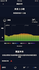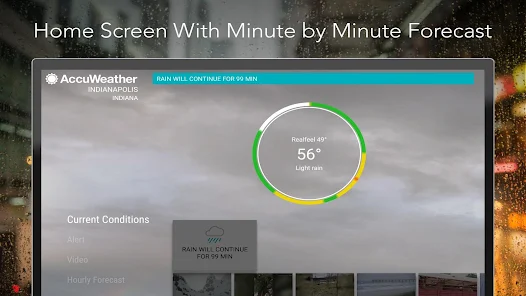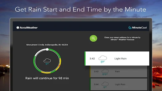 AccuWeather 提供最新的天氣新聞和資訊包括獨家專有的諸如 AccuWeather MinuteCast® 服務。AccuWeather MinuteCast® 服務可提供未來兩小時內的每分鐘降水預報並且可實現超當地語系化至具體的街道地址或 GPS 位置。此功能可提供 120 分鐘內的降水類型和強度的簡要預報以及您所在位置的降水開始和結束時間。MinuteCast® 適用於美國本土、加拿大、瑞典、丹麥、英國、愛爾蘭、日本、法國、西班牙、德國、比利時、安道爾、挪威、芬蘭、愛沙尼亞、瑞士、荷蘭、盧森堡、直布羅陀、列支敦士登以及日益增加的全球各地。