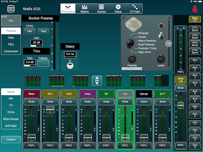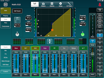 Three devices running SQ-MixPad can be connected and used at the same time as using the SQ surface, giving four separate points for control of all mixes.