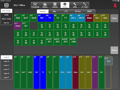 SQ-MixPad allows control of an SQ console over a wired or wireless network.