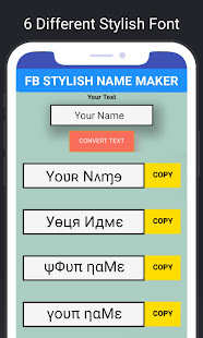 Here is Facebook Stylish Name Maker App With this app you can write your fb profile name in a stylish font with this app you can generate also capital name for facebook This app is designed for people who want to create an Stylish name id on Facebook If you also want to create a stylish name account on Facebook then this apk is for you. You just have to download the app and generate a name for your Facebook profile and put it on Facebook then your Facebook ID will be stylish.
