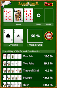 This app helps you to calculate probability of Win during playing in Texas Holdem Poker, before you lose;)