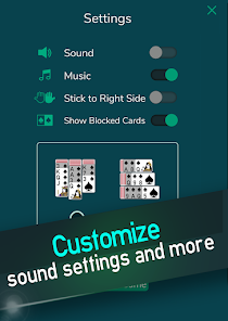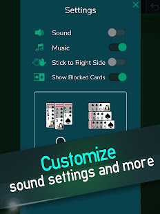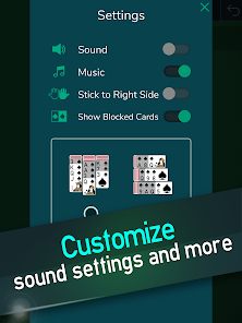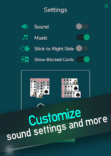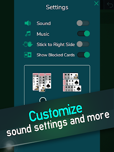 選擇流行的 1 套、經典的 2 套紅色和黑色牌,或專家 4 套模式,其中黑色和紅色卡只能按降序堆疊在同一套中。