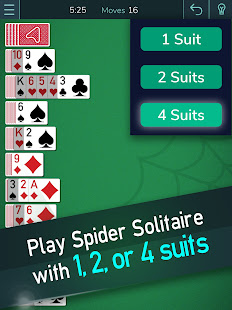 根據您的喜好自定義這款蜘蛛紙牌遊戲。玩唯一一款具有水平紙堆、一副大牌、不同佈局、挑戰和更多的遊戲!從四件、兩件或一件套裝蜘蛛紙牌中進行選擇,隨時隨地滿足您的紙牌需求。