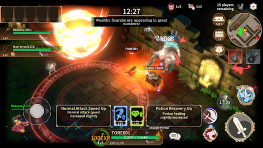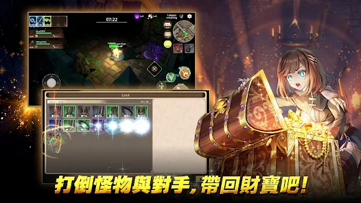 地下城中有各種寶箱以及守護寶藏的眾多怪物。擊敗怪物可獲得經驗值並升級。與夥伴合作擊敗怪物安全地打開寶箱。