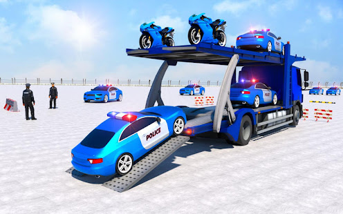 matter what the situation might be. Act as a police truck driver and transport police moto and police car on your police car transport trailer truck. Drive amazing US police vehicles in this US police transporter game 2022 when you get your hands on the US police helicopter. The best US police truck simulator before 2022 to make your driving skills even better. Become the best police driver games of the town. Your duty is to play as the police driver game. The police headquarters waiting for police car cargo to be transported. Hit the customize button to place tyres, hoods and spoilers plus many other parts of the cars as prescribed. This asphalt of police transporter game will let you indulge in the cop duty of transporting police fleet vehicles to the desired destination in this sensational of police truck driving transport game. Join the team of the police car transport truck trailer driver and start transporting the cars. Be a professional truck transport trailer driver. Complete the police car truck trailer parking to the destination within the time limit. Load all the police car truck transport on to the police transporter truck.