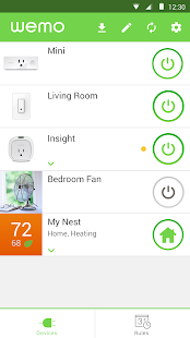 當您與 Nest 的恆溫器配對時,Nest 的「在家」與「離開」模式可以與您的 Wemo 裝置同步讓其自動控制。Nest 可以告訴 Wemo 您是否在家,讓您的風扇可以在家中無人時關閉,以節省能源。或者燈光可以在您進門時自動亮起。