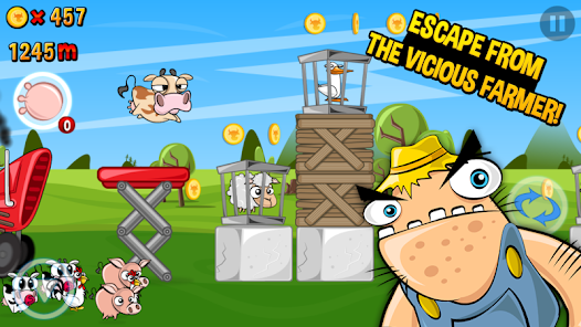 《奶牛快跑 Run Cow Run》是一款以农场、小动物和杀戮为主题的休闲跑酷游戏。农场主将小动物们一个个装进笼子准备屠杀小动物们眼泪汪汪的看着绞肉机不敢去想自己的未来。就在这时一只暴怒的奶牛决定改变命运。它一边拼命逃跑躲过追捕一边踢开同伴们的笼子让它们重获自由。