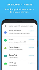 • App will protect your phone camera from watching and spying you by privacy threats as: Viruses, surveillance, spyware and malware applications.