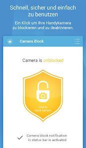• The app will protect your phone camera from watching and spying you by privacy threats as: Viruses, surveillance, spyware and malware applications.