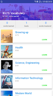 借助1000的雅思考試詞彙應用程序,列出由來自劍橋大學的語言專家和經驗豐富的老師選擇的單詞列表。該詞彙表涵蓋了針對6-6.5級雅思考試的學生所需的19個常見主題的基本詞彙。