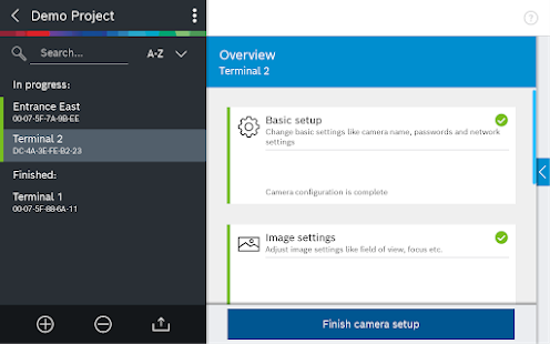如在現場,這些預先設置可以輕易地推送至已安裝的攝影機,讓您輕鬆又快速地完成安裝和設置程序。您也可以整合與更新先前設置的攝影機。攝影機的視界可以透過應用程式本身檢視,並與其他影像設定一起調整。系統會為已啟用的攝影機自動產生完整的報告。