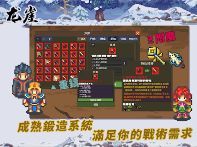 超好上手的遊戲流程優良的新手指引各種內容循序漸進的開放通過戰鬥和鍛造可獲取數百種隨機屬性的裝備一旦走上了刷裝備武裝勇者的道路就會讓人欲罷不能無法放下。