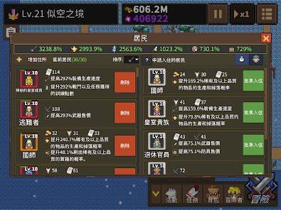 招攬居民擴張城鎮通過城鎮升級可以進一步增強小城的產能、開啟海外探索、提升冒險者能力解鎖稀有商品