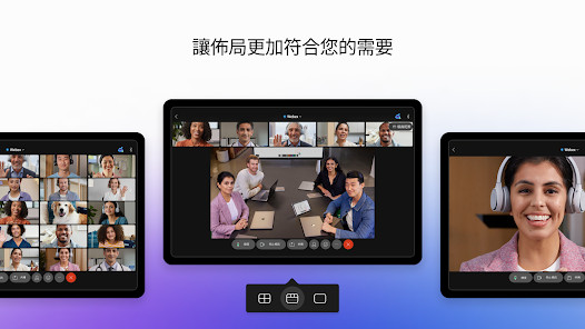 隨時隨地進行會議。透過背景雜訊抑制、高品質視訊、整合音訊和內容共用隨時隨地享受豐富的會議體驗。
