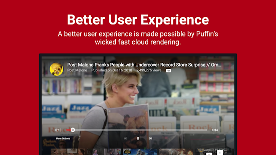 Puffin邪惡的快速雲渲染使更好的用戶體驗成為可能。 Puffin Browser比其他瀏覽器甚至高端Android TV /機頂盒上的本機應用程序都快。在主流或低端Android TV /機頂盒上,性能優勢尤為明顯。