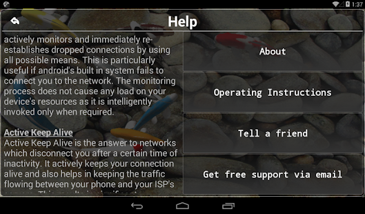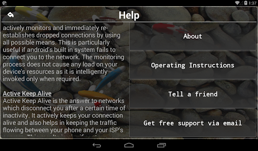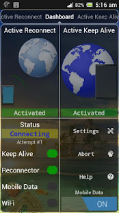 When activated, this feature actively monitors and immediately re-establishes dropped connections, using muscle if required. This is particularly useful if android's built in system fails to connect you to the network. The monitoring process does not cause any load on your device's resources as it is intelligently invoked only when required.