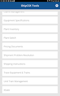 The ShipCSX mobile application provides customers anywhere/anytime access to updates on the status of their rail shipments from an Android phone. Customers can retrieve up-to-date information about their shipments using Railcar Trace, Train Trace, and Equipment Specifications (UMLER), or send information to CSX using Shipping Instructions, View Inventory, and Plant Switch. XGate module added for streamlining intermodal driver check-in and check-out processing at terminals.