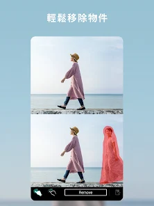 • 物件移除 – 一鍵去除照片中不想要的物件。