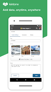 Kintone mobile helps you to work smoothly even outside the office, such as sending sales opportunity reports onsite and reporting statuses with photographs of stores and construction sites attached.