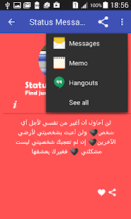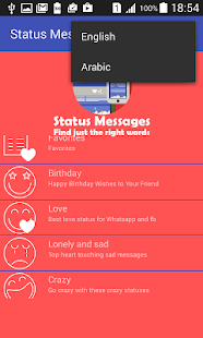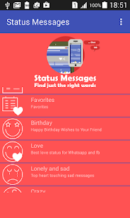 Contains the latest status messages, quotes and the most popular new short status messages organized in categories for your chat and sms applications.