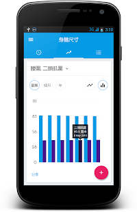 身體尺寸測量管理程式十分簡單易用,它擁有簡單的界面,出色的圖像化及詳細的圖清晰展現你塑身的進度,為你提供更多達致目標的動力,並替你保持體格健美。你只需要花幾分鐘記錄下身體各部分的尺寸,你將會得到很多實用的資訊助你分析你的節食或運動計劃。