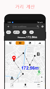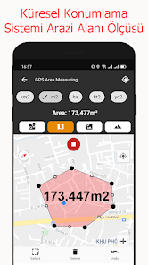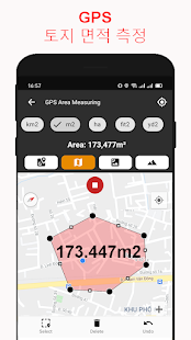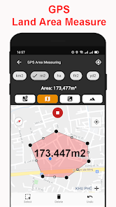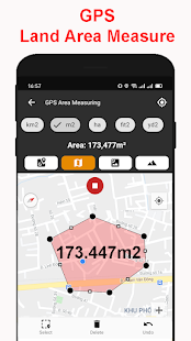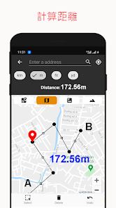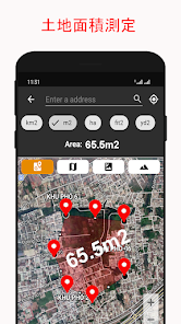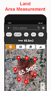 - 搜索任何地址或位置以測量地圖上的面積和距離。面積計算器應用程序非常適合計算土地的高程。