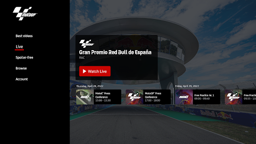 官方 MotoGP™ 應用程序是唯一一款提供一系列驚人功能的官方應用程序可幫助您關注您最喜愛的運動以 HD 1080p@50 對每個 GP 進行全面直播每次練習、排位賽和比賽的實時計時和音頻評論在 MotoGP™ 世界錦標賽期間 所有可用的直播和點播可通過您的智能手機或平板電腦在全球範圍內完全訪問無地域限制。
