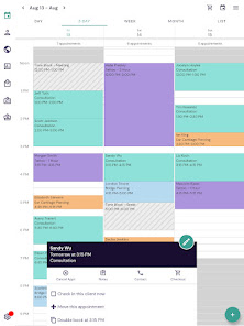 Not just an appointment scheduler, you can block out time on your calendar to let everybody at the studio know when you’re not available. The appointment book is always in-sync, so everybody will instantly know your availability.