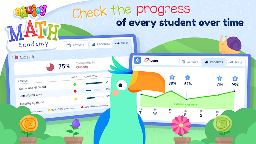 通過按類別劃分的任務和練習,孩子們將可以在玩樂的同時學習數學概念。該應用程序提供了具有統計信息和圖形的特定部分,以便家長和老師可以檢查學生的進度,並確定需要改進的地方或出現最多錯誤的內容。這樣,孩子們可以在遇到更多困難的地方加強重點。