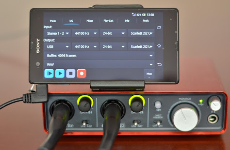 在啟動應用程序之前,請確保已連接音頻設備。如果您在啟動時收到一條消息,指出設備初始化失敗,則您的設備將無法使用(暫時)。原因可能是您的Android設備不符合要求,沒有提供足夠的電源(嘗試使用有源集線器),USB音頻設備不符合類別或您未使用OTG電纜(如果需要)。