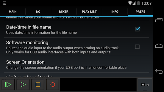 •由於許多用戶請求,因此具有非常基本的播放列表(目錄播放)功能。沒有mp3播放或精美的圖形,該應用程序適合錄音!