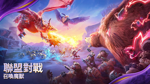三頭蛇、雷鵬鳥、魔龍等巨型遠古魔獸正在侵擾大陸他們擁有毀滅性的力量快與盟友合力擊敗魔獸馴服作為己方戰力。在戰鬥的危機時刻召喚聯盟巨獸擊垮敵軍讓牠成為你的秘密武器
