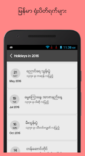 • မြန်မာပြည်က ရုံးပိတ်ရက်တွေ အပါအဝင်၊ မြန်မာ ပွဲလမ်းသဘင်ရက်တွေလည်း ကြည့်လို့ရတယ်။