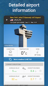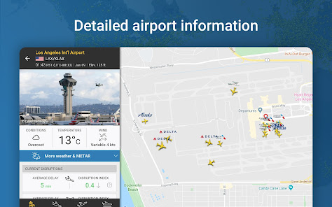 點擊機場圖示即可了解到達和出發、航班狀態、地面飛機、當前延誤以及詳細的天氣狀況