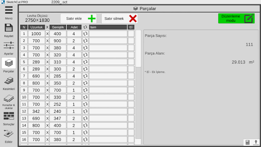 ● Automatically calculate the area of sheets, parts, and scraps, cutting length, and edge length