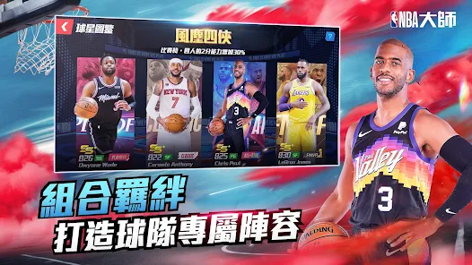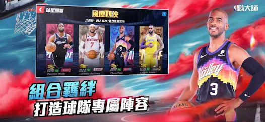 人類精華影片、海軍上將、微笑刺客等退役名將重返賽場。詹姆士、柯瑞、哈登等現役巨星任你調遣。
